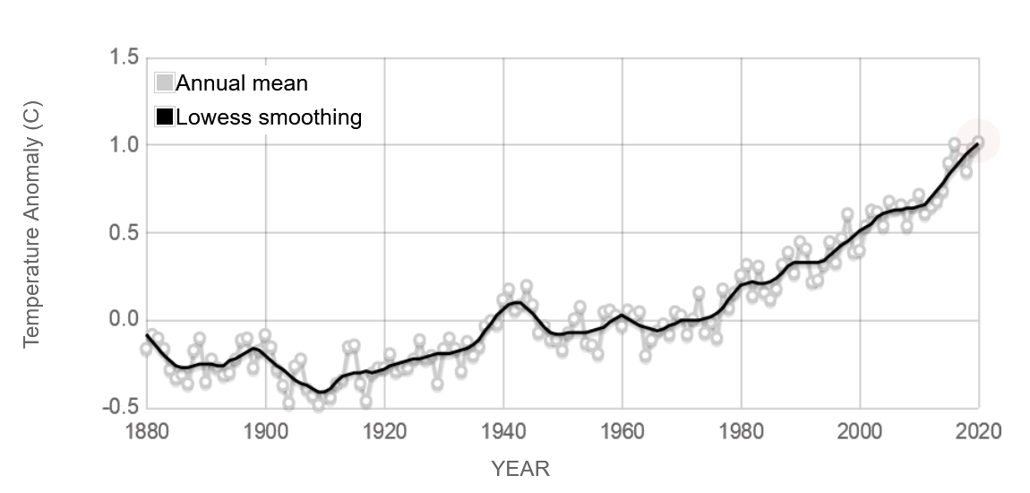 However, as this second chart below illustrates, global heating kicked off in a serious way from about 1980, when CO2 levels were 'only' 20% higher than pre-industrial levels.
