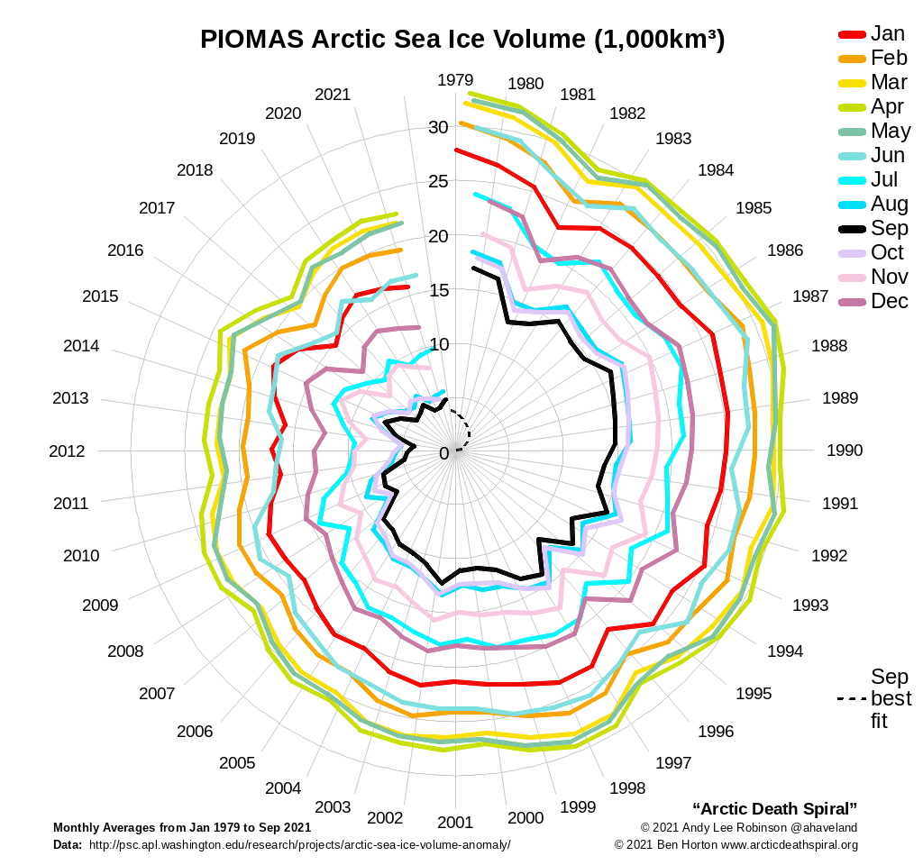 Some of these consequences of the baked-in global heating scenario, will be topics of further posts. Suffice to say, significant challenges to think about and plan for, where ever you live. It is hard to find/identify realistic discussions about the baked-in climate risks we face amongst the clouds of net-zero bulldust. When all else fails a short contemplation of the Arctic Death Spiral, with it's Zen inducing spirals of declining Arctic sea ice truth is something I find quite centering....